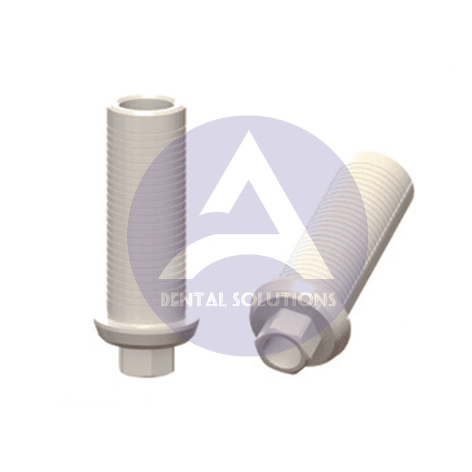 यूसीएलएएब्यूटमेंट पर पूर्ण प्लास्टिक एक मशीनीकृत सोने के एब्यूटमेंट/इम्प्लांट इंटरफ़ेस और यूसीएलए के सोने के हिस्से पर संसाधित प्लास्टिक ट्यूब के साथ निर्मित होते हैं।7, शीर्ष पंक्ति) सभी तीन प्लेटफार्म व्यास के लिए उपलब्ध हैं (3.5, 4.5, 5.7 मिमी) जबकि गैर-सूचकांक UCLA (चित्र।7, निचली पंक्ति) केवल 3.5 और 4.5 मिमी प्लेटफार्म व्यास के लिए पेश किए जाते हैं। प्रत्येक आधार एक पूर्ण किट बनाने के लिए एक अंतिम निर्धारण पेंच के साथ पैक किया जाता है।